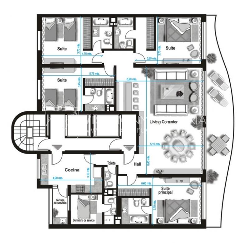 Living - Comedor Hall 8,45 x 6,90 mts.