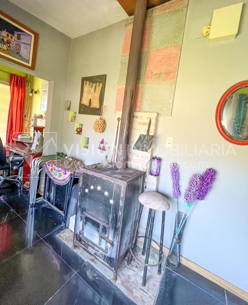 Hay un ambiente o área que da al frente, espacio hoy usado como escritorio, que posee estufa económica de hierro a leña.